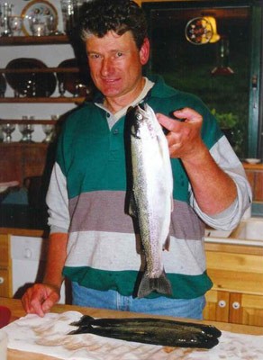 Ein Gast vom Cozy Guesthouse mit einer herrlicher Regenbogenforelle