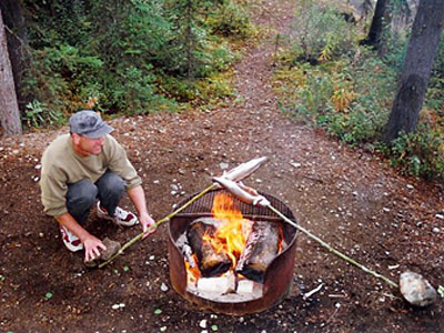 An der frischen Luft und über dem Lagerfeuer gegart, schmecken die frisch gefangenen Regenbogenforellen gleich noch einmal so gut