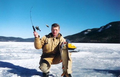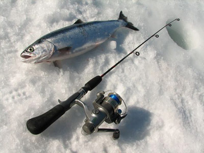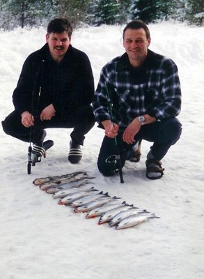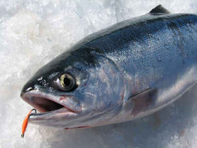 Dieser Rekord Seesaibling von 30 Pfund, biss im Jan. 2010 beim Eisangeln auf Lachse auf eine Made...