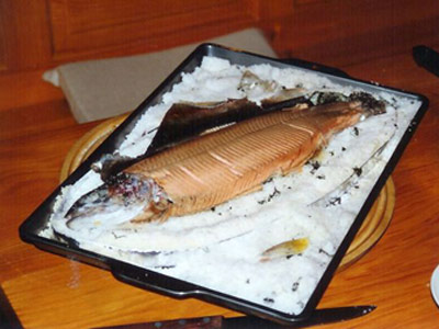 Der 6,5 pfündige Saibling in Salzkruste gebacken war ein feines Dinner für vier Personen