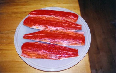 Ein von den Gästen gefangener Kokanee-Lachs wartet auf die Zubereitung