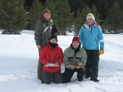 Es sah so aus, als hätten die Seesaiblinge unter dem Eis gerade auf diese Reisegruppe gewartet, um das Urlaubsdinner zu bereichern
