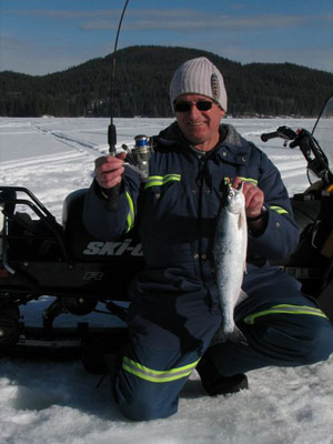 Der Flug nach Beautiful British Columbia, Canada hat sich gelohnt : Große Seesaiblinge von über 10 Kilo und viele Kokanee-Lachse bis zwei Kilo sind in dieser Winter-Eisfischsaison gelandet worden