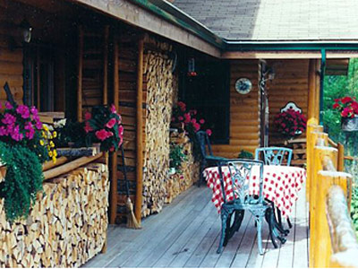 Viele Blumen schmücken das Holz vor der Hütte. Ein perfekter Platz um den Tag mit einem guten Frühstück zu beginnen