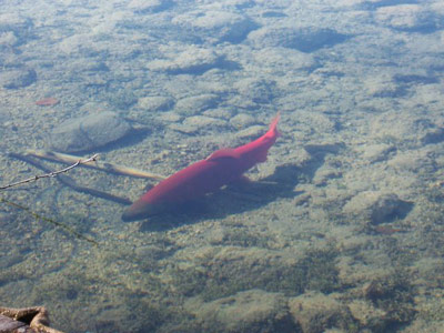Im Herbst ( Indian-Summer ) können die Kokanee-Lachse in unseren Seen beim Laichen beobachtet werden