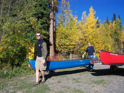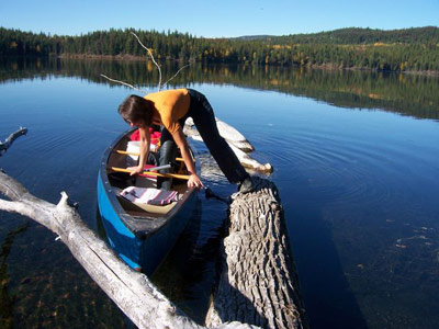 Die Boote werden zu Wasser gelassen und eine Kanu-Tagestour zum hinteren Deka-Lake beginnt
