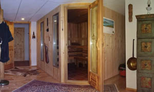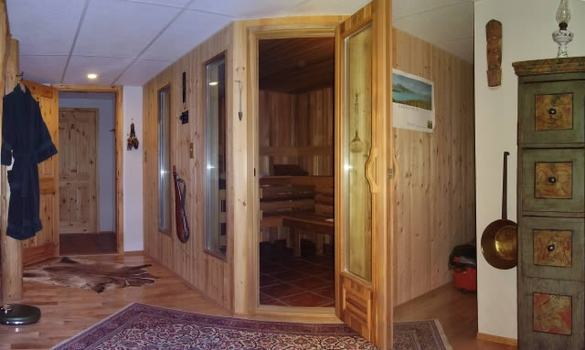 Die große Lounge, in der sich die Gästen zur                       Der Saunabereich, der Ihnen zum Entspannen zur Verfügung steht.